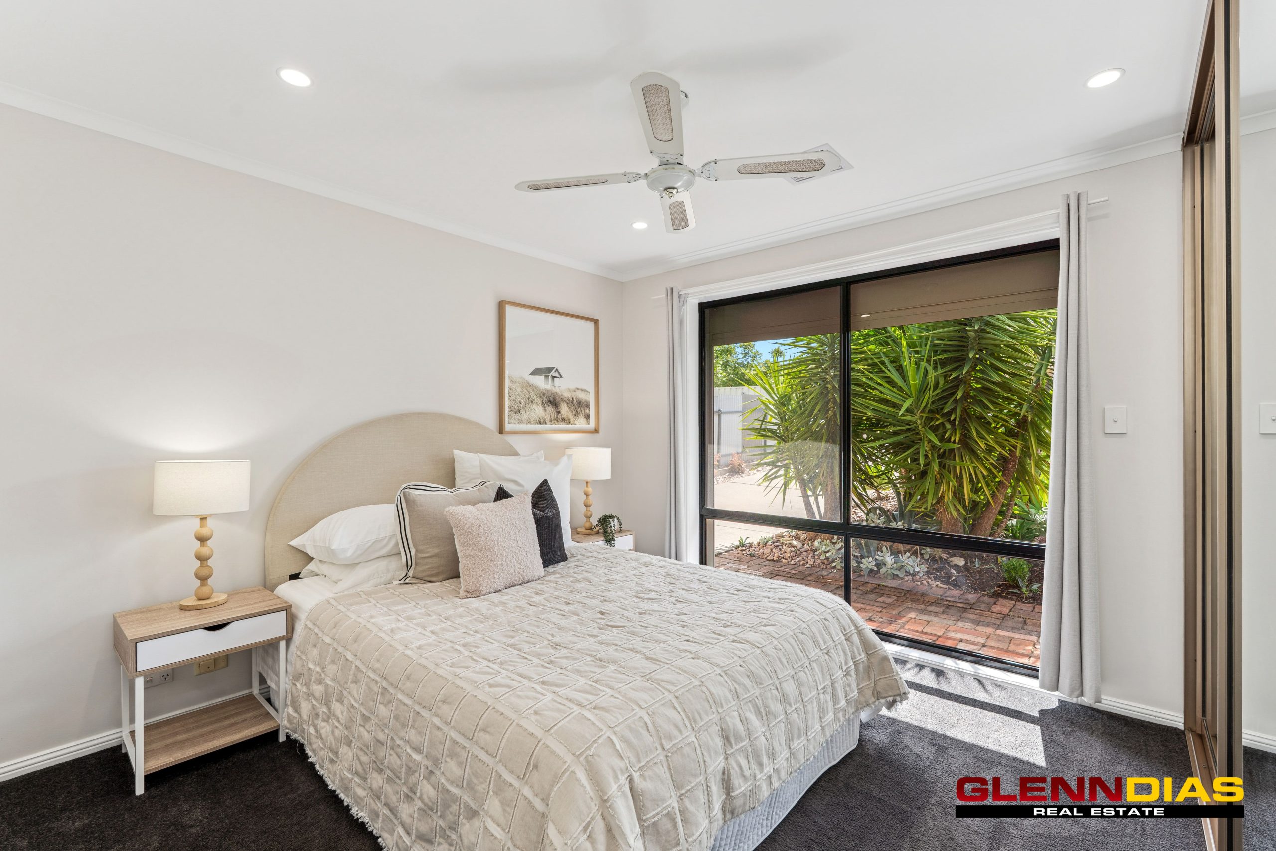 • Three carpeted bedrooms with ceiling fans; master includes mirrored built-in robe